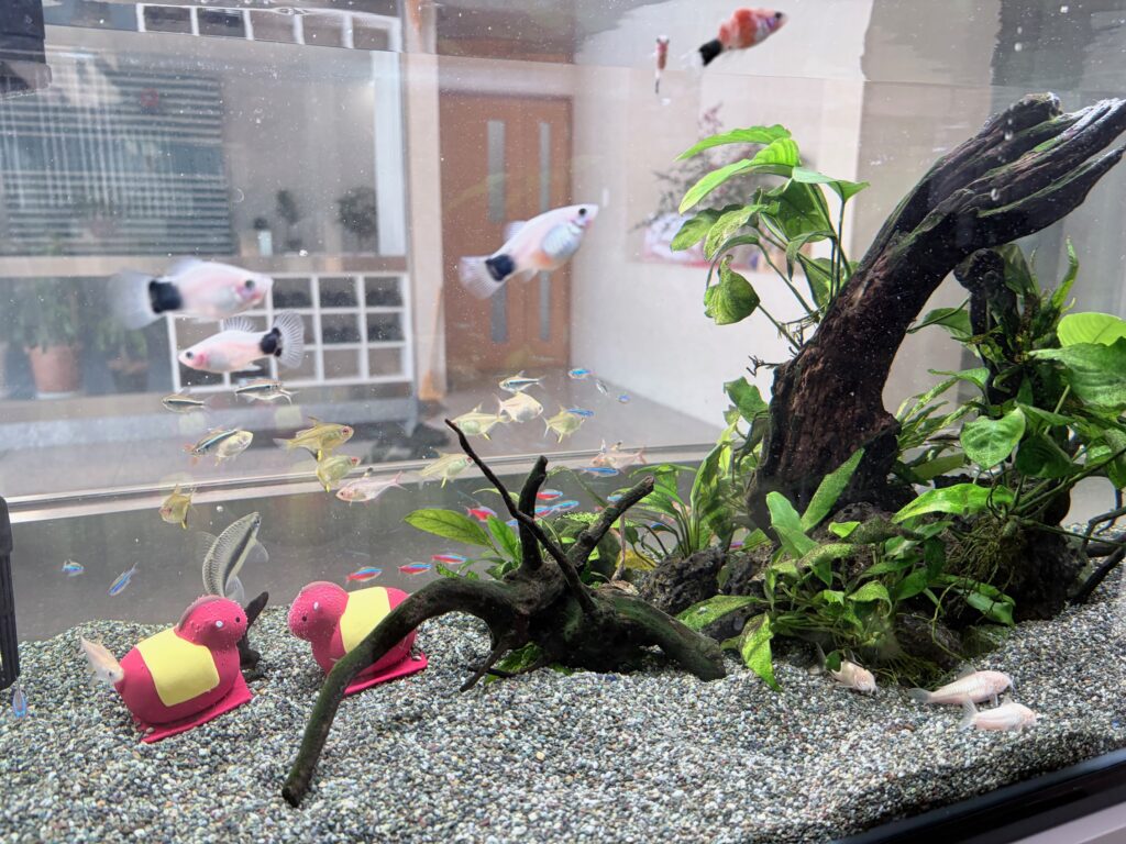 当社は、5日(月)より仕事スタートです。熱帯魚の水槽を掃除してきれいになりました。