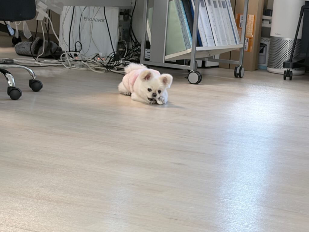 事務所でお出迎えしてくれるのは、社長の愛犬