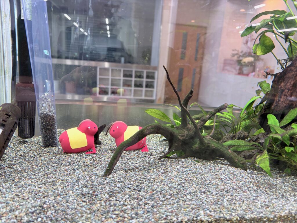 ①低床の掃除 ②ガラスのコケ除去 ③時々レイアウト変更 ④水を入れる