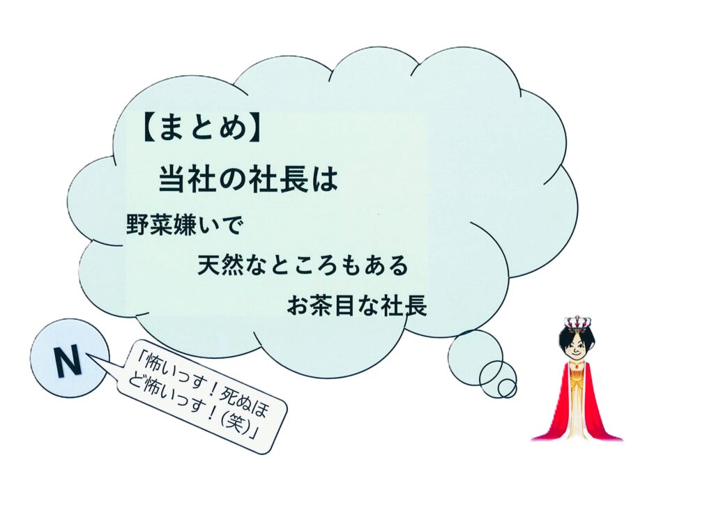 「以上、👹(厳しい)だけど、従業員思いの優しい社長の紹介でした」